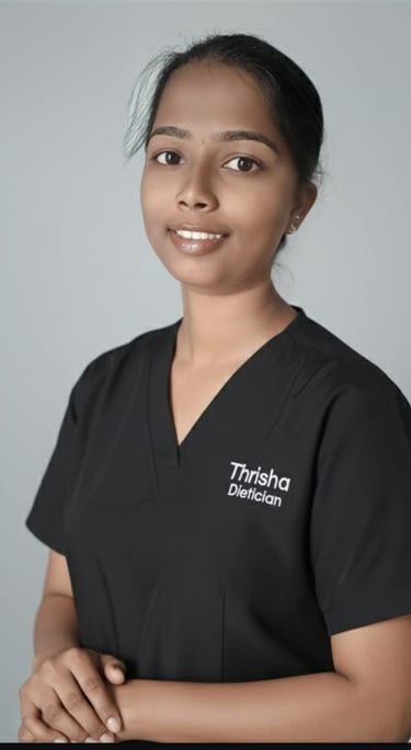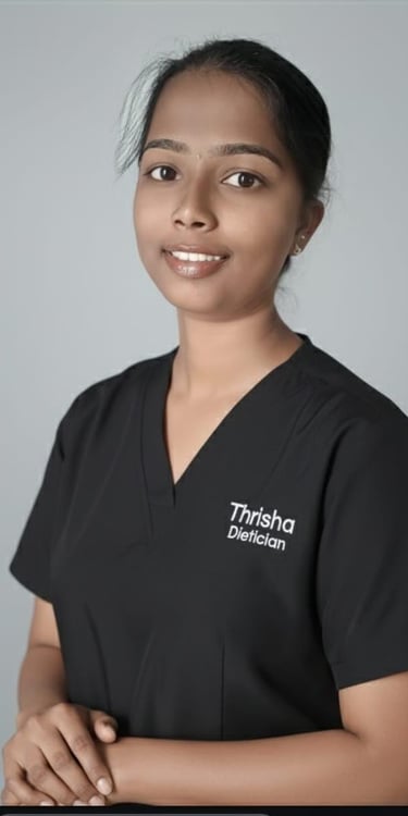 she is dt.Thrisha, a certified Dietician coach and founder of Dietary Wings. I specialize in evidence-based nutrition for PCOD/PCOS, thyroid health, diabetes management, hormonal balance, and sustainable weight loss.